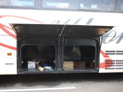 トランクルームはあまり大きくはありません。平均的な中型バスで、トランクの大きさは高さ55cm×横幅70cm×奥行き60cm程度のが2つあります