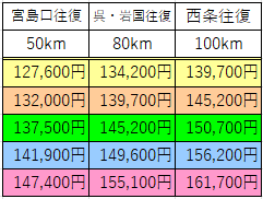 料金は距離、拘束時間、曜日や季節により変わります。